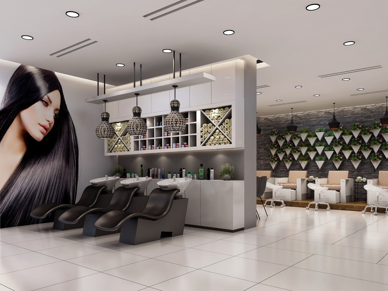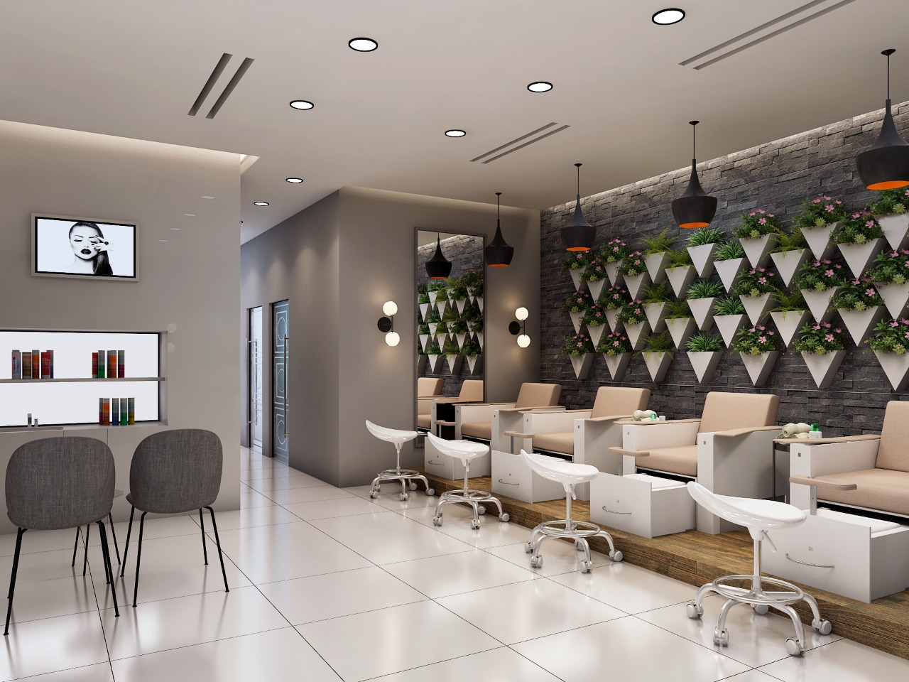 A 2023 interior design project located in Al-warqa, Dubai, creating a second location for client Fedoua's successful beauty brand. This completed salon features a refined design approach with attention to spatial flow, lighting design, and premium finishes that enhance the client experience while maintaining brand consistency.