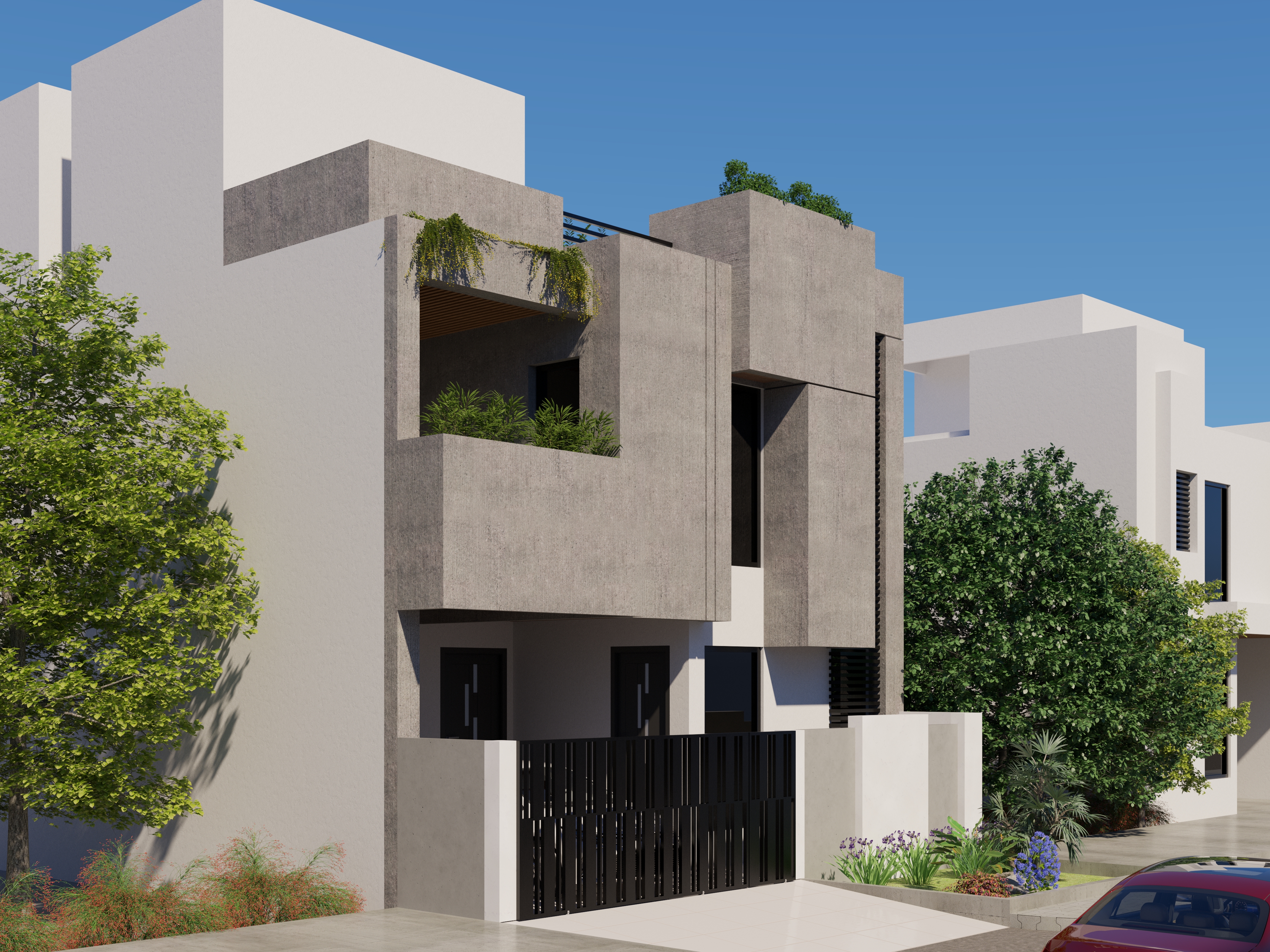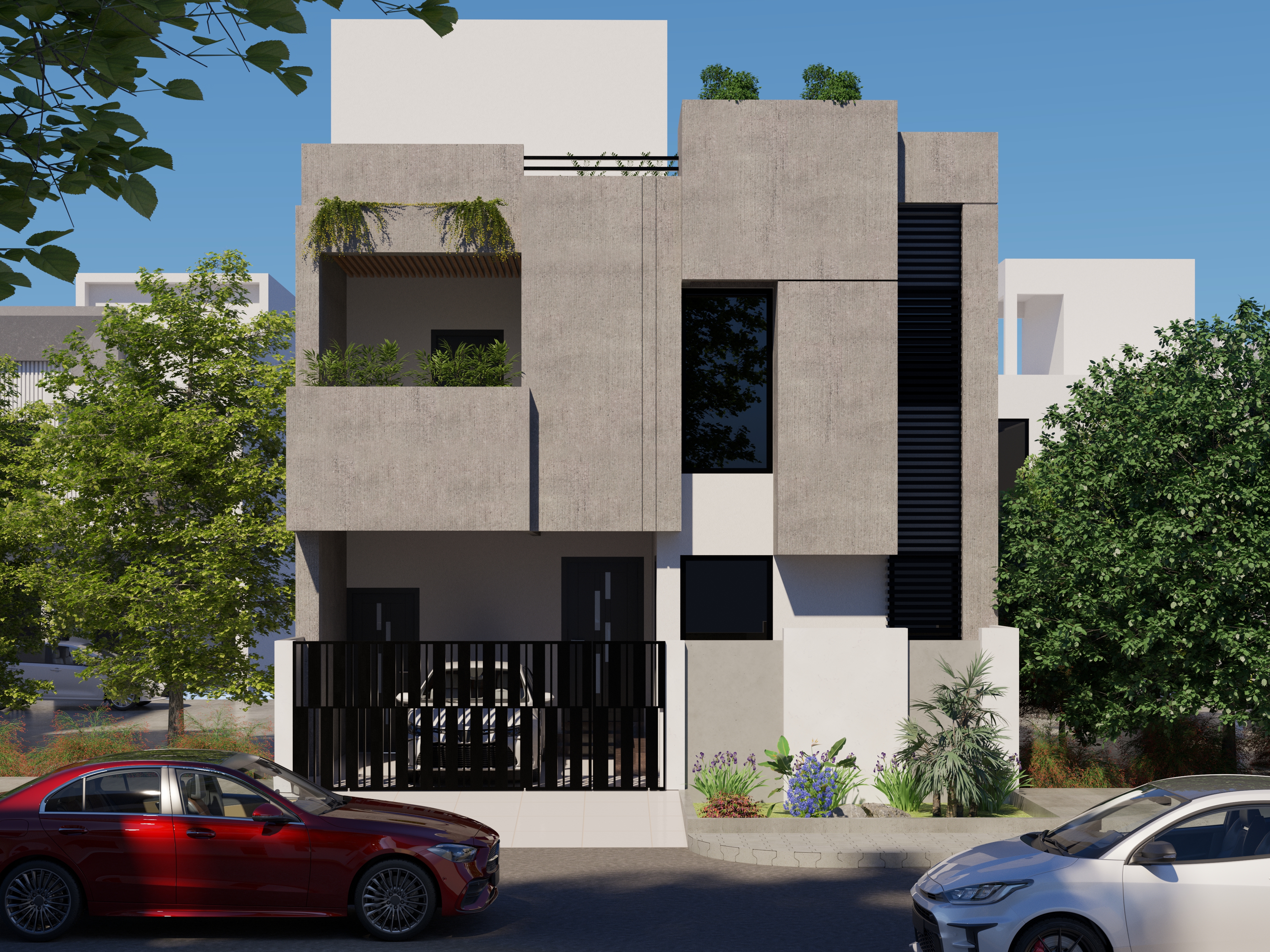 A contemporary residential project in Faisal Town, Islamabad. This design for client Amjad features modern architectural elements with thoughtful spatial planning and a refined material palette. The residence showcases innovative 3D modeling and design concepts that balance aesthetic appeal with functional living requirements, creating a distinctive home in the heart of Islamabad.