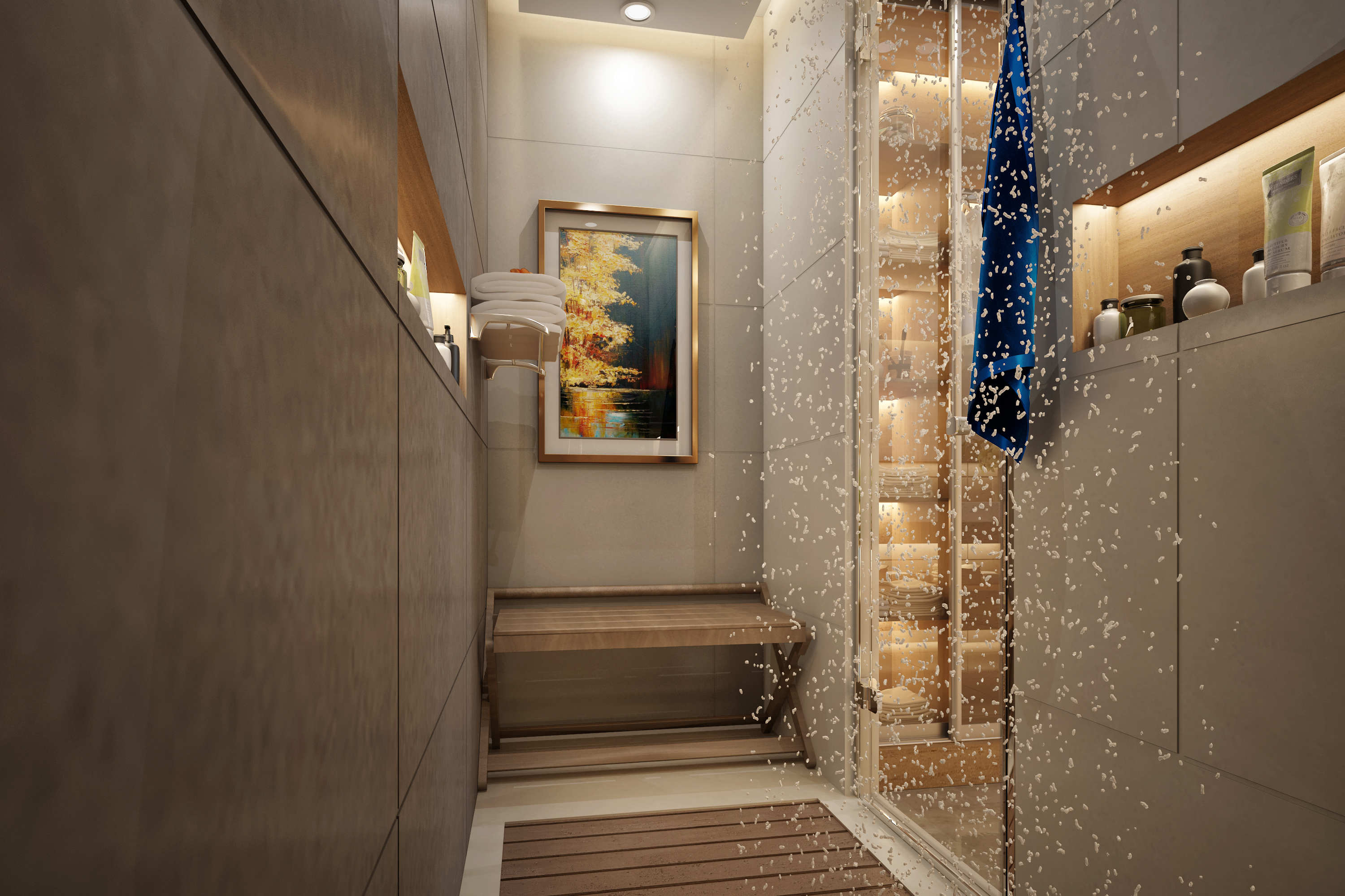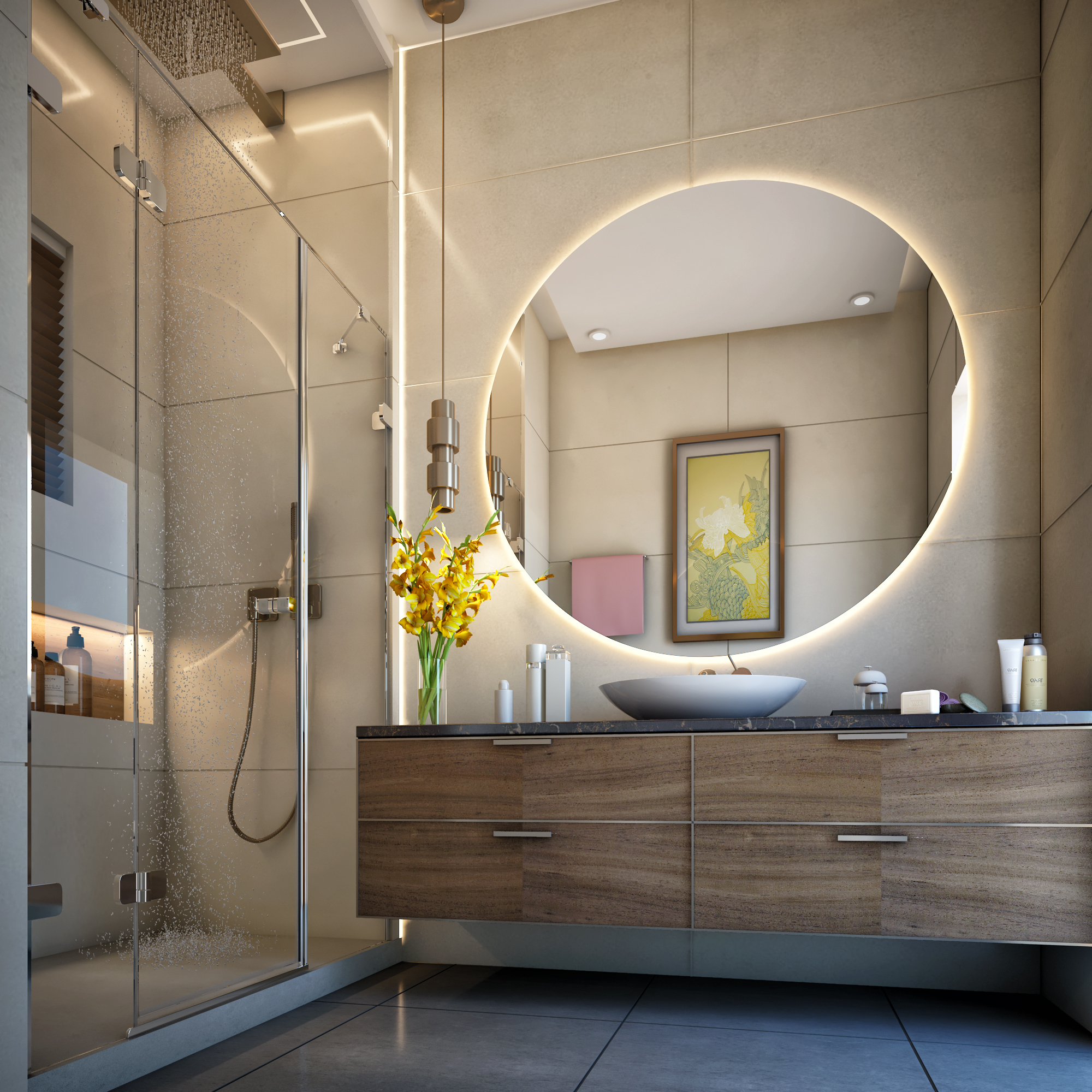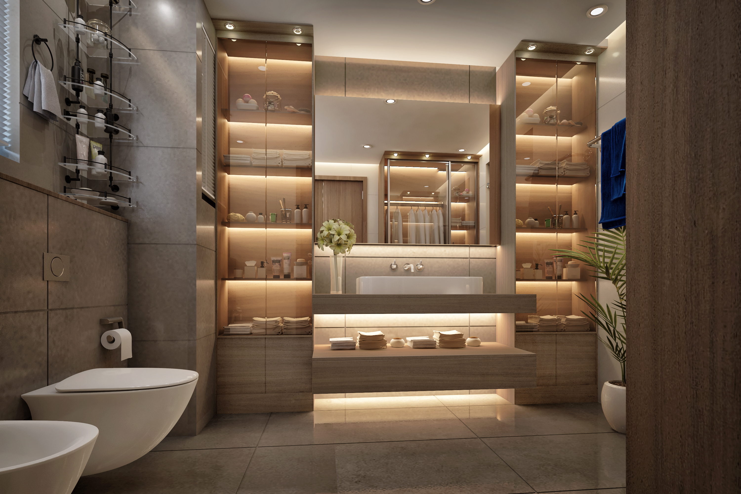 A luxurious residential project completed in 2022 in Dubai's exclusive Motor City district. This comprehensive interior design project for client Tanassub features bespoke spaces that balance opulence with functionality. The design includes custom bathrooms, refined material selections, and innovative spatial planning.