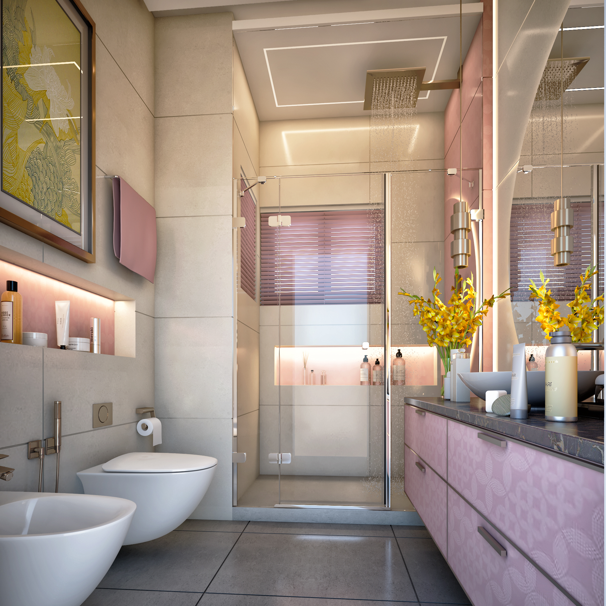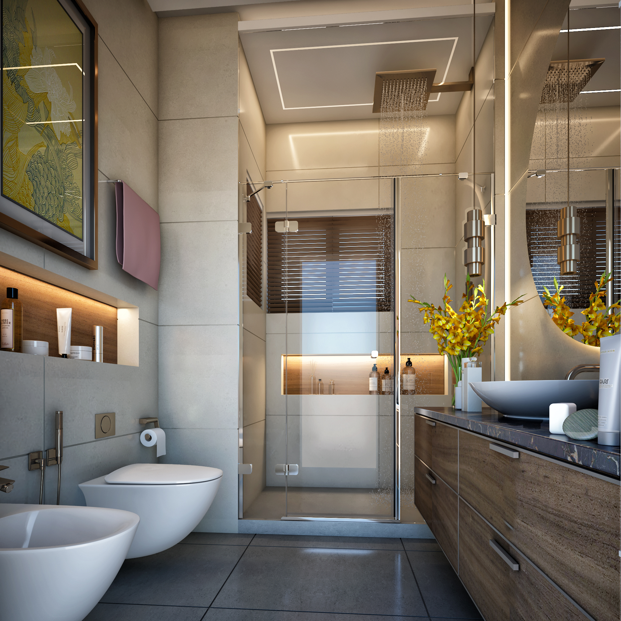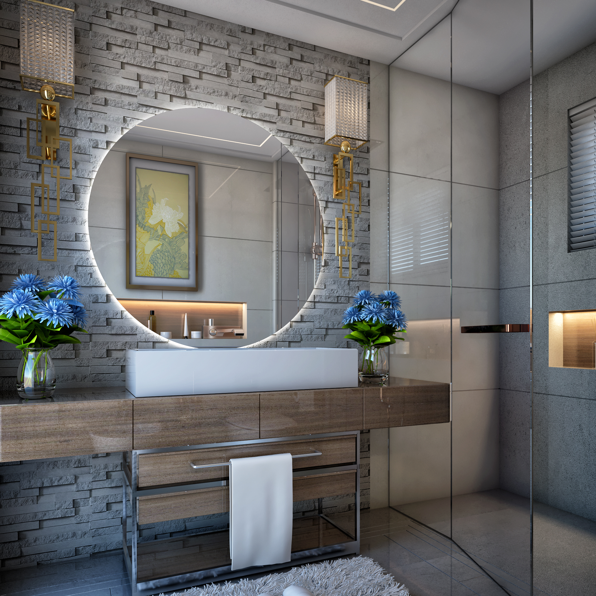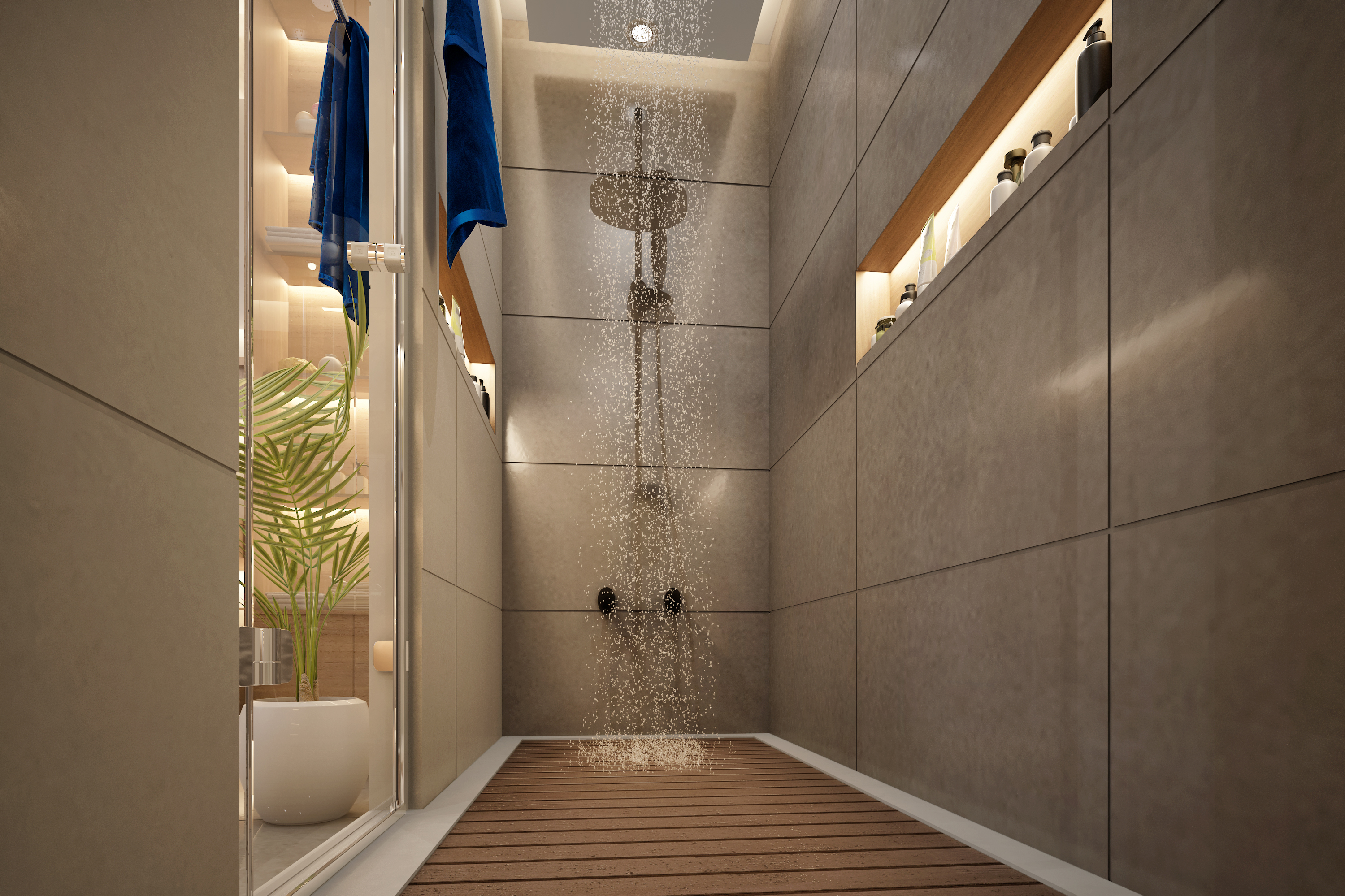 A luxurious residential project completed in 2022 in Dubai's exclusive Motor City district. This comprehensive interior design project for client Tanassub features bespoke spaces that balance opulence with functionality. The design includes custom bathrooms, refined material selections, and innovative spatial planning.